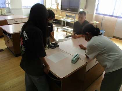 放送委員会では、夏休み明け(8月26日)からの放送活動についてどんな原稿を読めばいいのか、どんな活動をしていけばいいのかを話し合う姿が見られました。