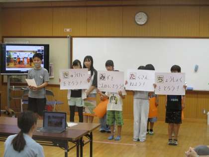 気温の高い日が続く中、全校児童にむけて、こまめな水分補給や帽子の着用など、熱中症対策の大切さを呼びかけました。