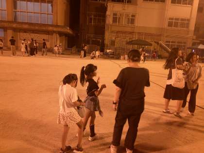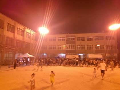 校長のまど 『めいしん夏祭り その5』 公開日 2025/08/22 更新日 2025/08/22 校長のまど 日も暮れて、夏祭りの感じがさらにアップ。風情があってとってもいいですね。夜の学校というだけで子どもたちのテンションが上がります。あちらこちらで運動場を走りまわる姿が。子どものエネルギーって本当にすごいですね。