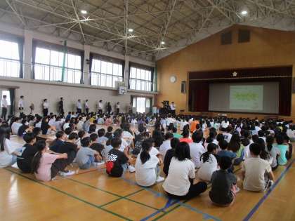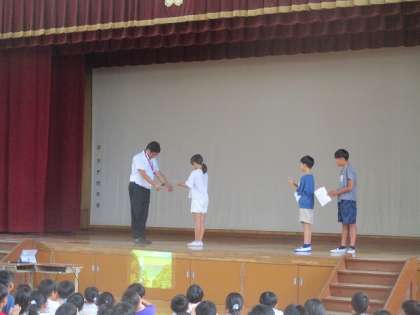 夏休みに行われた6年生の水泳記録会の表彰も行われ、頑張った児童をみんなで拍手で称えました。