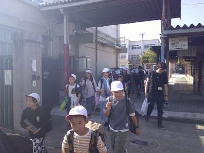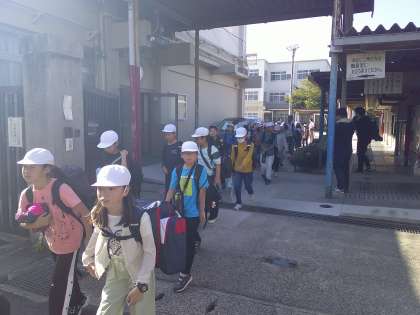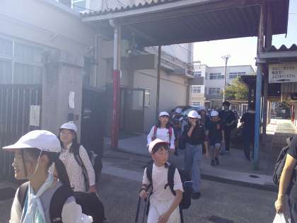 花背山の家 『行ってきま〜す 編』 公開日 2025/09/16 更新日 2025/09/16 5年生 いよいよ正門を出ます。しばらく学校には帰ってこれません。見送ってくれた若草学級のみんな、3年1組のみんな、そして先生たちに『行ってきま〜す!』