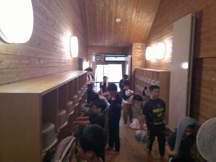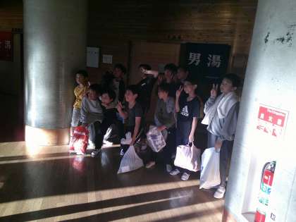 花背山の家 『いい湯だな♪ 編』 公開日 2025/09/16 更新日 2025/09/16 5年生 今日はとても暑かったのでみんなたくさん汗をかきました。 お風呂で身も心もスッキリして気持ちがいい〜。 おっと、脱衣所に自分の脱いだものを忘れるんじゃないぞ〜。お風呂上りに、はいポーズ。