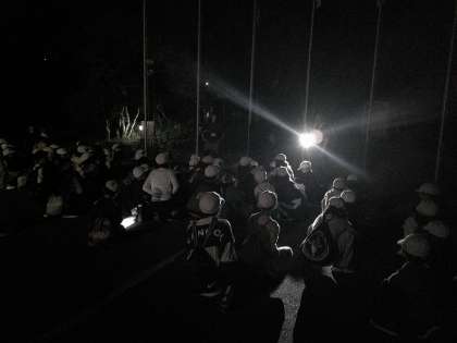これは出発前の写真です。正直、暗くてよくわかりませんがせっかくなので少しでも雰囲気が伝わればと思い掲載しておきます。私もお化け役に徹していたので、残念ながらナイトハイク中の撮影はしていません。