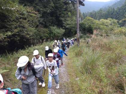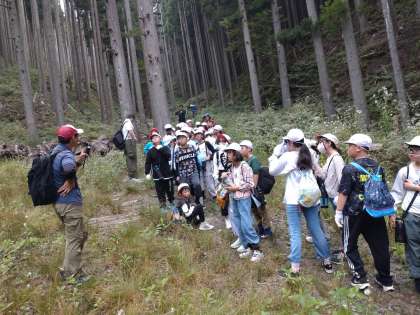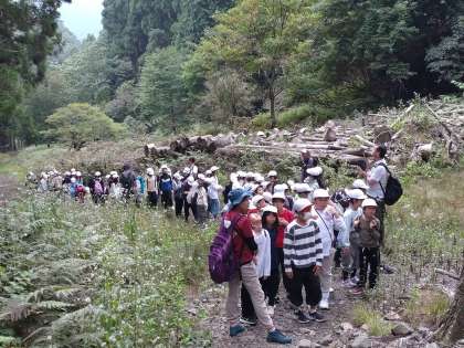 予定通りに雲取山へ出発。出発して20分ほどたったでしょうか。子どもたちはもう山の中です。