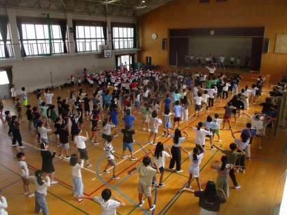 9月中旬から各学級で動画を見て練習に取り組んできました。今日初めて集まって練習しましたが、お手本通りにきちんと踊れていました(明日は2年生・3年生・6年生が集まって練習します)。大変素晴らしい明親小学校の子どもたち。この調子で頑張ってほしいと思います。
