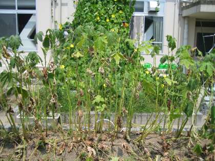 暑さにめげず,オクラが大きく育ちました。収穫を忘れると,20センチメートルほどの大きさになっています。一人一本ずつ持ち帰り,家で食べた子・冷蔵庫に大事においている子といろいろ楽しんでいるようです。