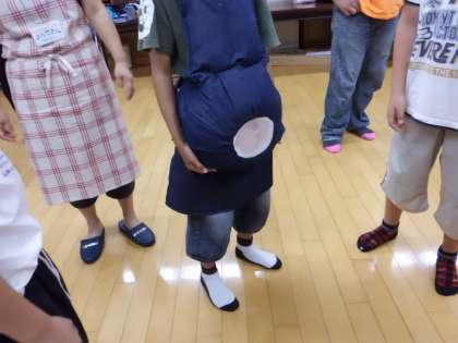 そのあとは、腹帯をまいたりする妊婦体験や、