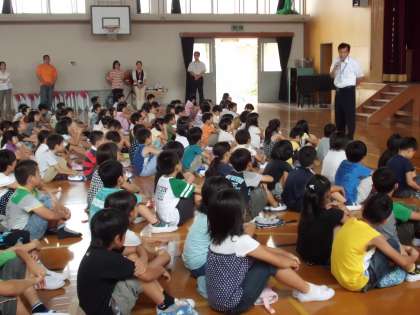 朝会では、校長先生から