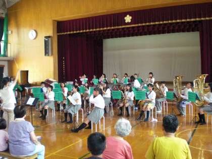 7月28日(土)の午前中,淀少年補導委員会主催の「健康ふれあいコンサート」が体育館で行われました。ダブルダッチ&キッズダンス,スワンの会によるフォークダンス,そして最後は大淀中学校吹奏楽部の演奏と,夏休みに入って最初の土曜日,楽しいふれあいのひと時がすごせました。