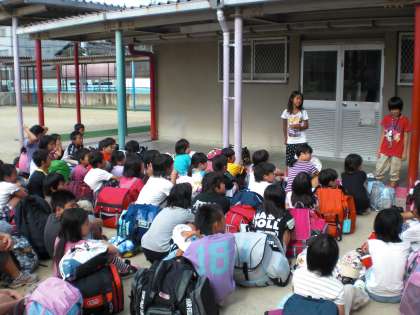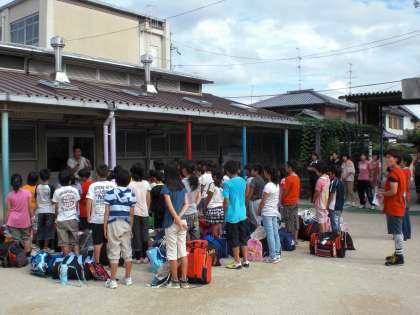 5年生は,本日より奥越高原青少年自然の家での4泊5日の長期宿泊学習に出かけました。全員が元気に参加でき,出発式を終えてバスに乗り込みました。