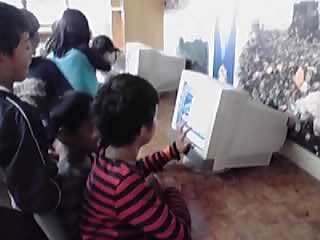 展示を見ているところと、六呂師のビデオなどを見ているところです。