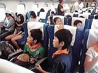 新幹線の速さに感激し、、窓の景色をくぎ付けされるように見ている子どもたちもいます。