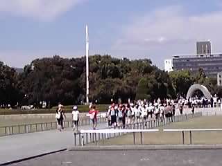 原爆慰霊碑をグループでしっかりめぐり、集合時刻には、きっちり座って待てました。