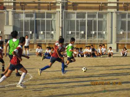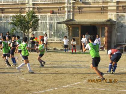 交流試合をしました 公開日 2009/09/26 更新日 2009/09/26 学校の様子 9月16日(水),明親小学校でサッカーの交流試合をしました。毎年,伏見西支部の小学校の中で交流試合をしていますが,今回は納所小学校のサッカー部のみなさんが来てくれました。試合が始まると,普段の練習とはまた違って子どもたちは楽しみながらも白熱したプレーをしていました。応援にも熱が入ります。 試合が終わると,自分たちの力を出し切って満足な顔をしていました。