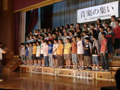 9月26日(土),大淀地域生徒指導連絡協議会主催の『音楽の集い』が,大淀中学校で催され,大淀中学校・美豆小学校・明親小学校からたくさんの児童・生徒が参加しました。明親小学校からは,6年生の児童が参加し,音楽の学習で取り組んできた「この星にうまれて」を合唱しました。体育館の中に,きれいな歌声を響かせ,心をひとつに歌いあげました。この歌は11月の学童音楽会でも歌う曲目です。学童音楽会でも素晴らしい歌声を響かせてほしいと願っています。