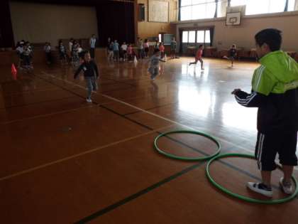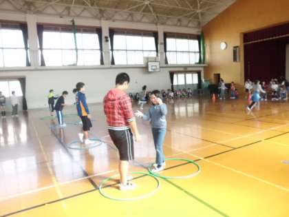 なかよしグループで、じゃんけんリレーを行います。