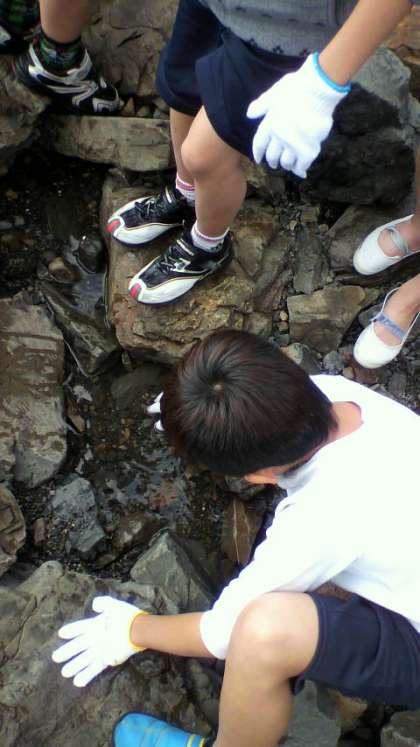 磯観察では、カニや貝、イソギンチャクの仲間などを見つけていました。