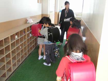 昨日,入学式を迎えた一年生が,今日から明親小学校に登校してきました。