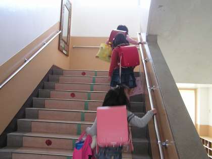 初めての集団登校で学校に行きました。これから毎日やさしいお兄さん,お姉さんたちと一緒に登校します。初めてのことで,いろいろ教えてもらうこともあるでしょうが分からないことは,何でも聞いて,早く学校生活に慣れてほしいと思います。