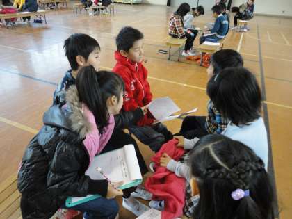 明親小学校では、毎年低学年、中学年、高学年ごとに集まり、