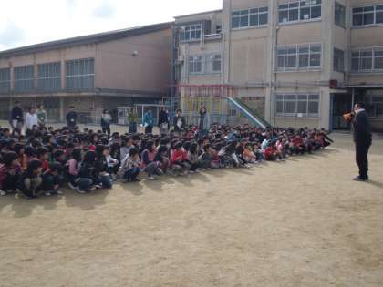 明親小学校では、地震を想定した避難訓練を行いました。