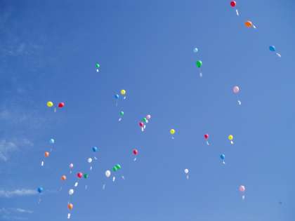 最後にはみんなで願い事を付けた風船を飛ばしました。子どもたちは,空高く飛んでいく風船に手を振っていました。みんなの願い事が叶いますように・・・。