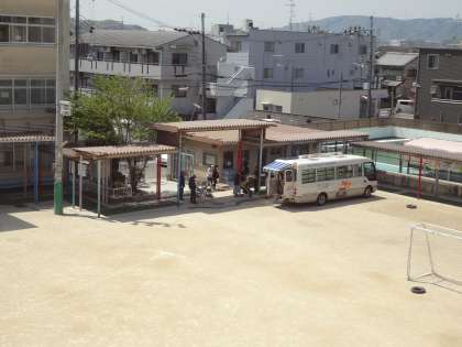 3・4時間目の時間帯にグラウンドの片隅に移動図書館の車が来ていました。 いろいろな方々が利用されているようです。