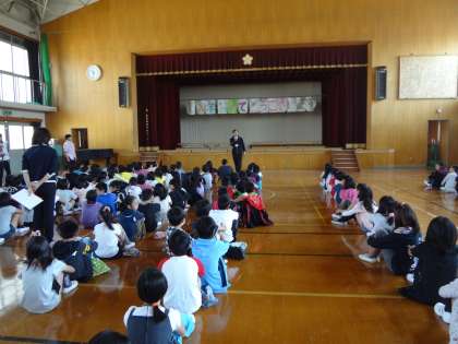 中間休みに部活動開講式がありました。 4〜6年生の希望者が参加します。 来週から部活動が始まります。