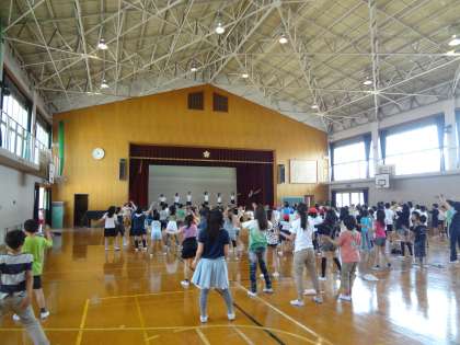 中間休みに,4〜6年生が,体育館で練習をしました。