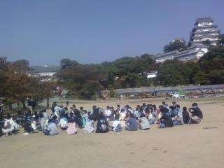 姫路城に到着し,見学しました。みんなで,楽しくお昼ご飯です。