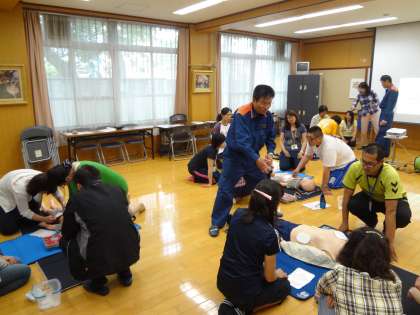 放課後,ふれあいサロンにて,救命救急講習会がありました。