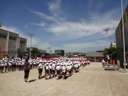 1・2時間目に開閉会式,入退場,応援の練習を行いました。