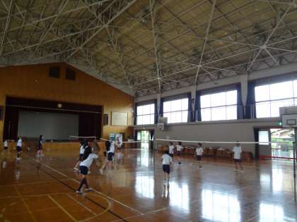 放課後,体育館ではバドミントン部の子どもたちが活動していました。