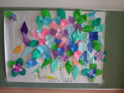 その後は,折り紙でアジサイを作りました。