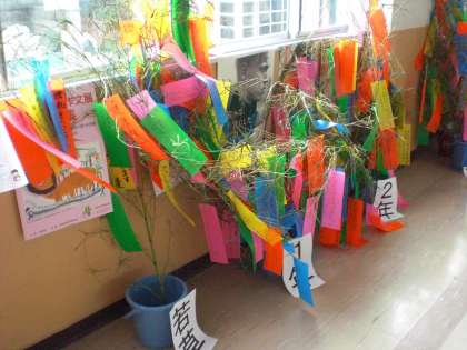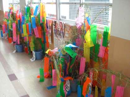 今年も,淀本町商店街の七夕笹飾りがそろいました。みんなの願い事が叶いますように。