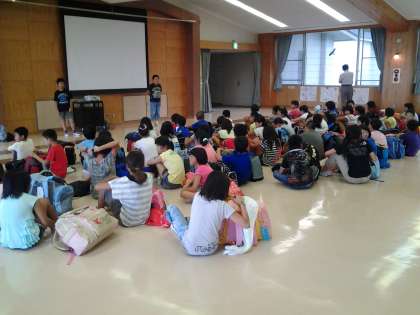 入所式を行っています。雨もなく今日の活動は予定通り行えそうです。