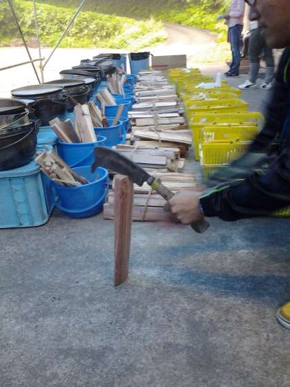 薪の準備をしています。15:30から野外炊事を行います。