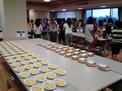 今日の朝食は,パンです。準備も素早くできています。