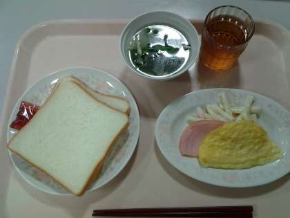 おいしく朝食を食べています。