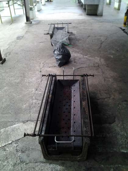 第三炊飯場では,午後に行う魚つかみの準備をしています。