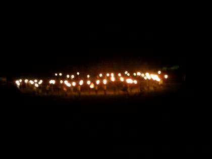 昨夜はキャンプファイヤーを思い切り楽しみました。最後は1人一本トーチを持ち、火の神からファイヤーの火を分け与えてもらいました。