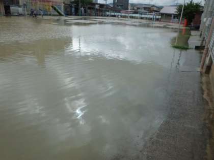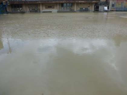 グラウンドも大きな水たまりができていました。