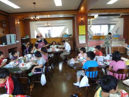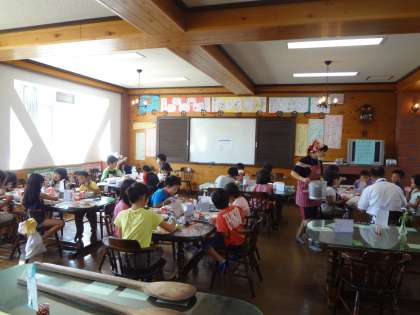 ランチルームで,いつもと違う食器を使い,おいしそうに食べていました。。