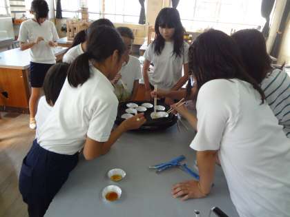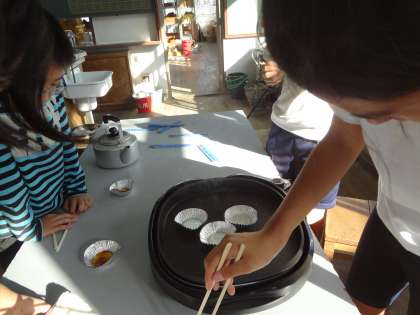 理科室では,科学クラブがべっこうあめを作っていました。