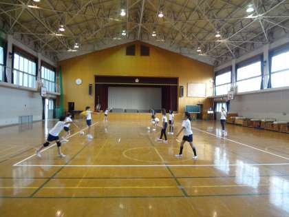 来月の全市交流会に向けて,体育館でバレー部が活動していました。