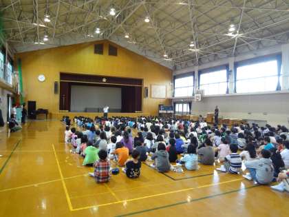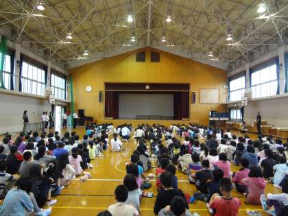 校長先生の話を静かにきいています。