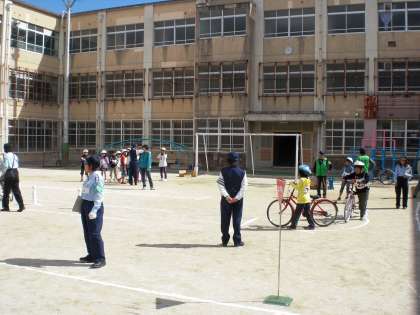 4年生は,3年生の時に行った自転車教室の経験をもとに,実技試験と教室での学科試験を行いました。この結果をもとに後日,自転車免許が伏見警察署から発行されます。