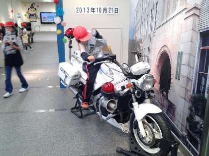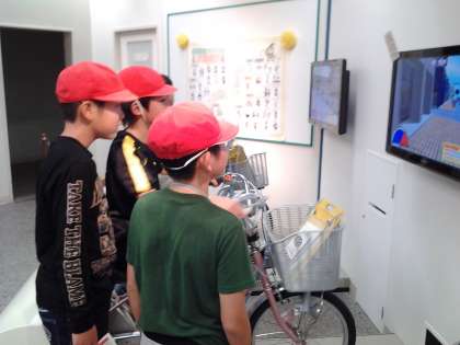白バイに乗ってみたり,自転車の安全走行のシミュレーションをしています。