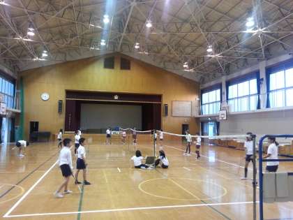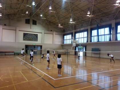 部活動の様子です。体育館では,バドミントン部が活動しています。
