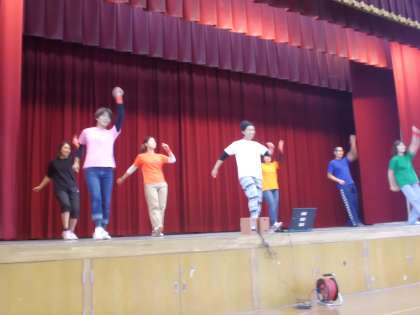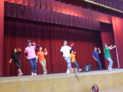 二つ目は,「ちっぽけな勇気」という曲でヒップホップを踊りました。歌のはじめに手話を取り入れ,リズムにのって楽しく踊りました。観客の皆さんの手拍子で更に盛り上がることができました。